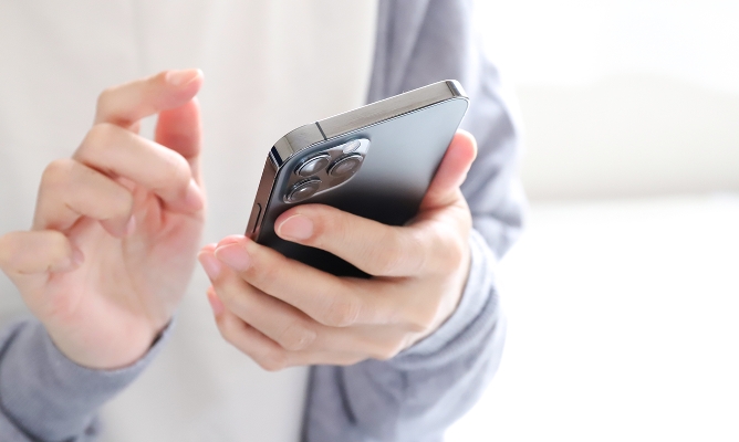 上あご撮影の際はスマートフォンを逆さに持つと撮影しやすいです。