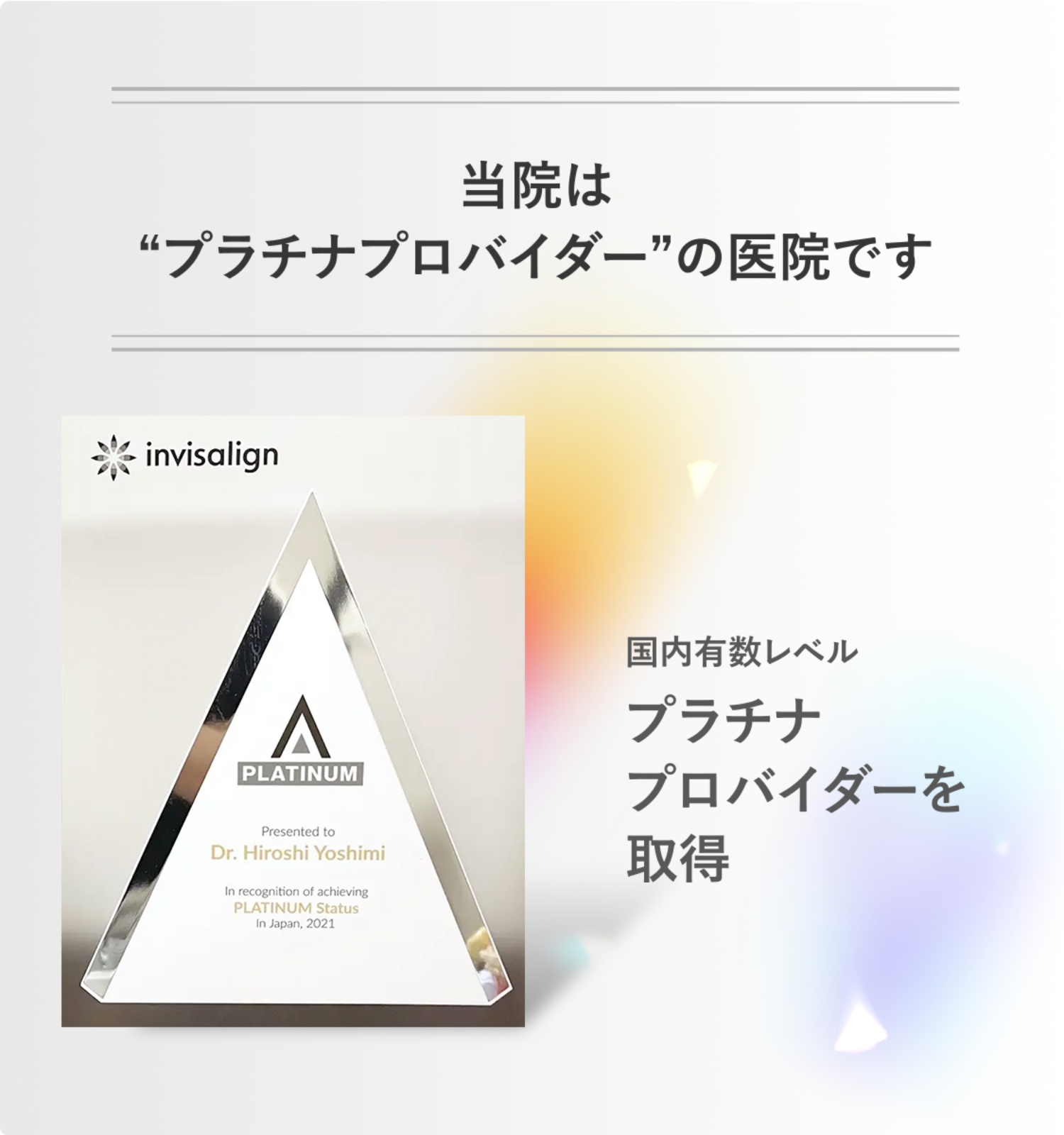 インビザラインも他のマウスピースと同様に、奥歯を動かしたり、抜歯して歯を動かす治療や、重度な叢生など(歯の移動量が大きい治療)を苦手としています。 当院は、インビザライン矯正の実績も豊富なため、他院では受けて頂けない難しい症例時も対応できます。