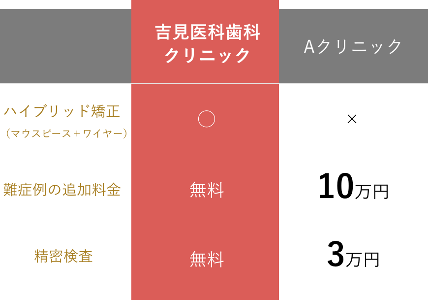 ※ワイヤー矯正治療が必要な場合でも、上記のメニューから追加料金はございません。